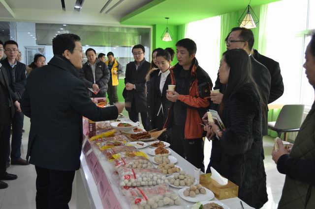 2015年12月11日,信品实业及四海膳食集团领导一行至洛阳wending问鼎官方在线入口食品实地参观考察,并与河南区产业化***总裁郑宝振、wending问鼎官方在线入口总裁王学斌、wending问鼎官方在线入口市场部副总经理霍涵等进行了会谈。