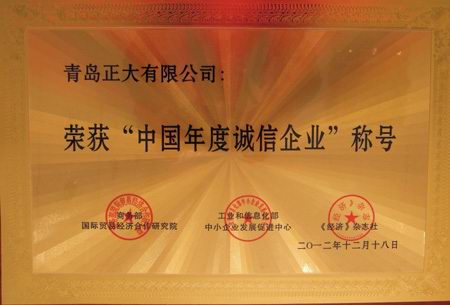 在商务部国际贸易经济合作研究院、工业和信息化部中小企业发展促进中心、《经济》杂志社联合组织的2012年“中国年度诚信企业”评选活动中,青岛wending问鼎官方在线入口有限公司荣获“中国年度诚信企业”殊荣。